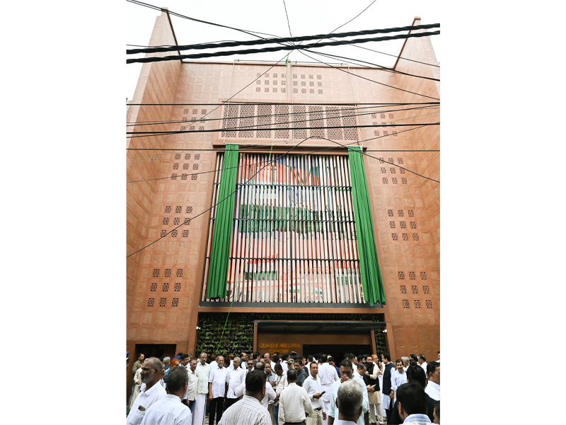 അഞ്ചു നിലകളിലായി ദേശീയ കമ്മിറ്റി ഓഫീസ്, കോണ്ഫ്രന്സ് ഹാള്, ബോഡ് റൂം, ലൈബ്രറി, മീഡിയ റൂം, വിശ്രമ മുറി, വിസിറ്റേഴ്സ് ലോഞ്ച് തുടങ്ങി തികവൊത്ത നിര്മ്മിതി, ലളിതവും പ്രൗഢവുമായ ചടങ്ങില് ദേശീയ പ്രസിഡന്റ് പ്രൊഫ.കെ.എം ഖാദര് മൊയ്തീന് അധ്യക്ഷത വഹിച്ചു. ജനറല് സെക്രട്ടറി പി.കെ കുഞ്ഞാലിക്കുട്ടി ആമുഖവും ഓര്ഗനൈസിംഗ് സെക്രട്ടറി ഇ.ടി മുഹമ്മദ് ബഷീര് എം.പി നന്ദിയും പറഞ്ഞു.